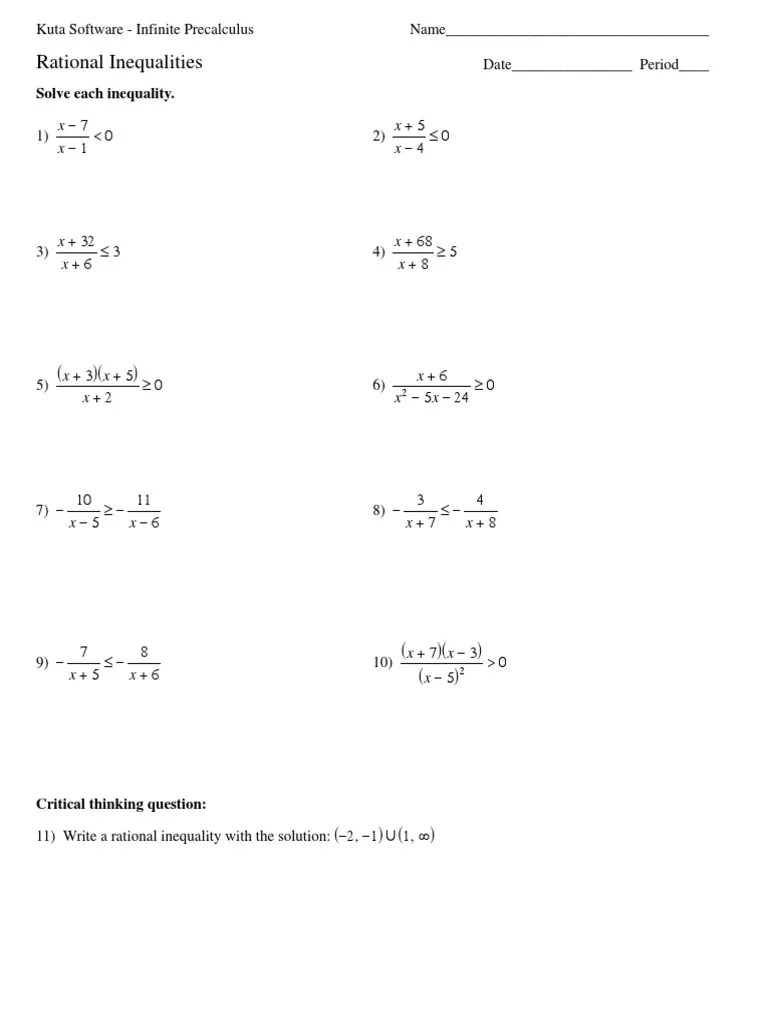 Rational Inequalities Worksheet With Answers - 08 Inequalities Worksheet Solution Ma109 College Algebra Uky Studocu :